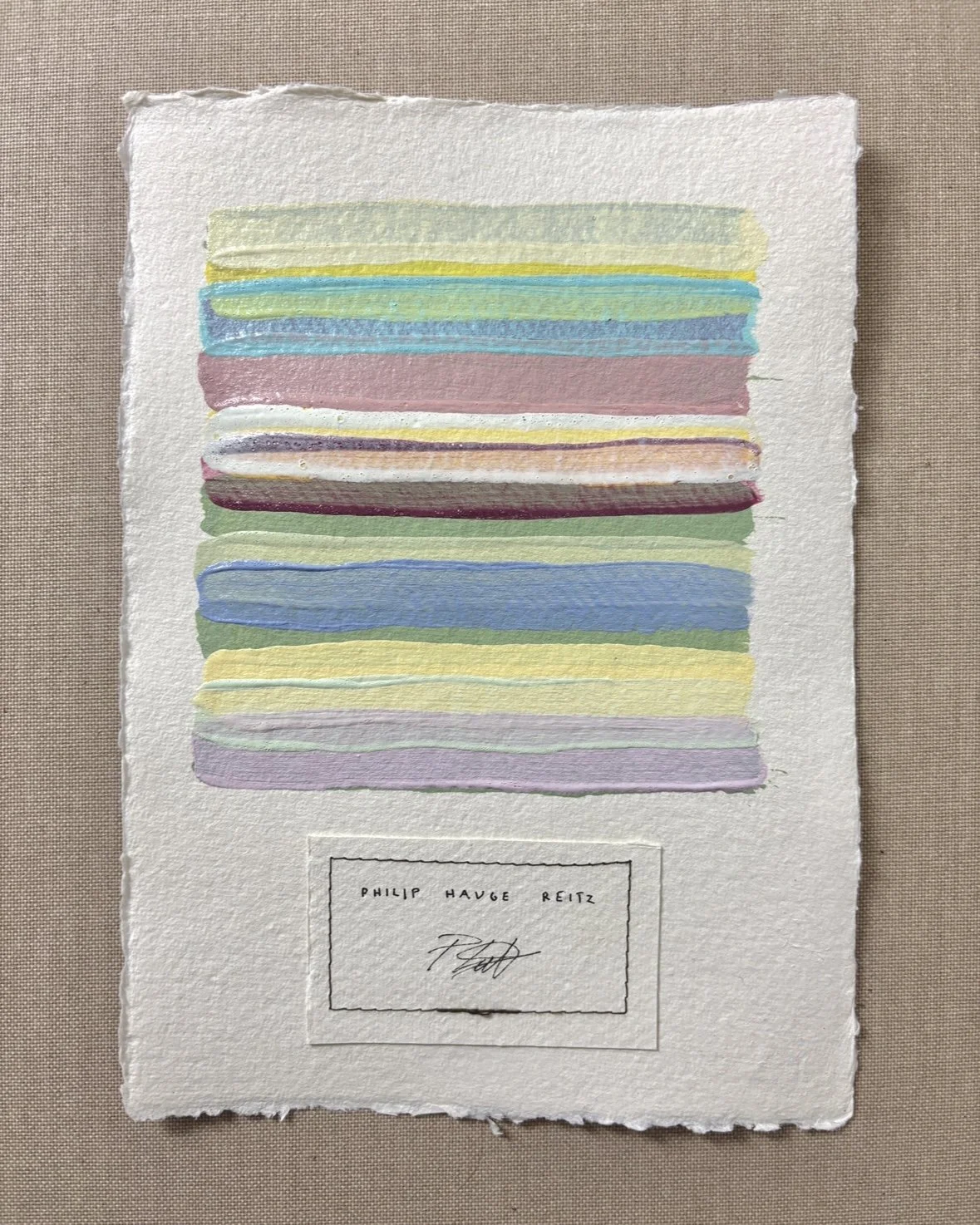 MIXED MEDIA ON HANDMADE PAPER WITH SEWN THREAD