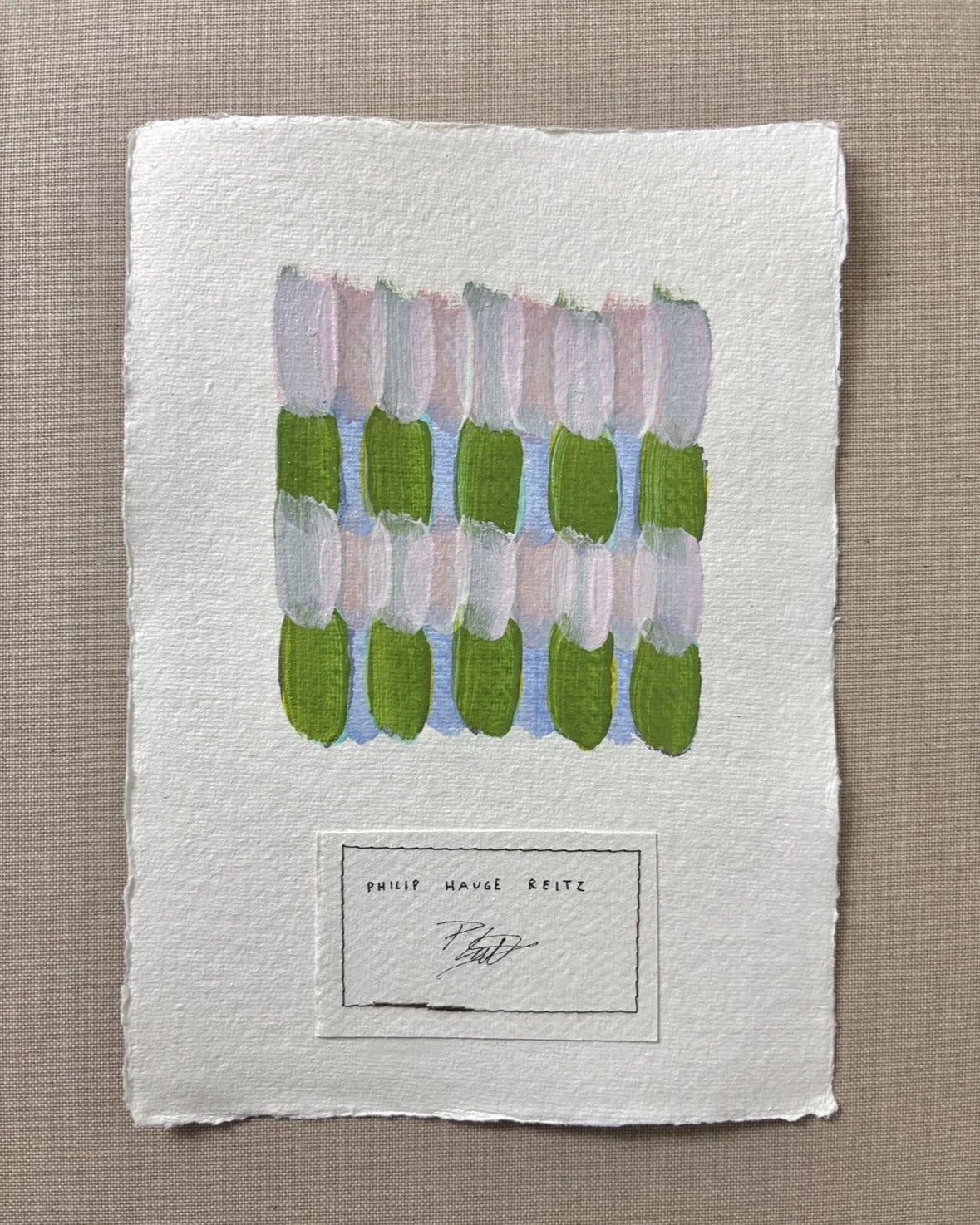 MIXED MEDIA ON HANDMADE PAPER WITH SEWN THREAD