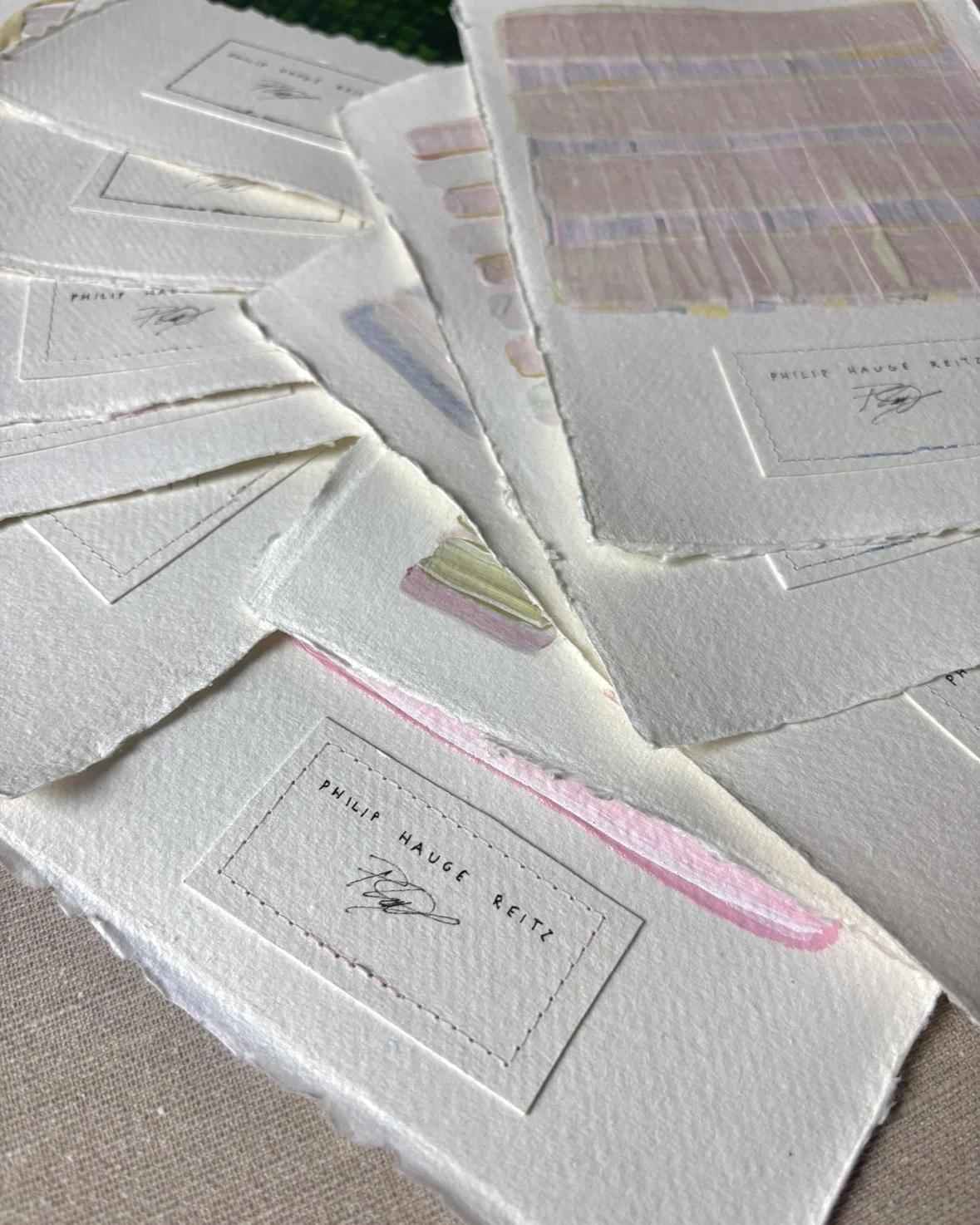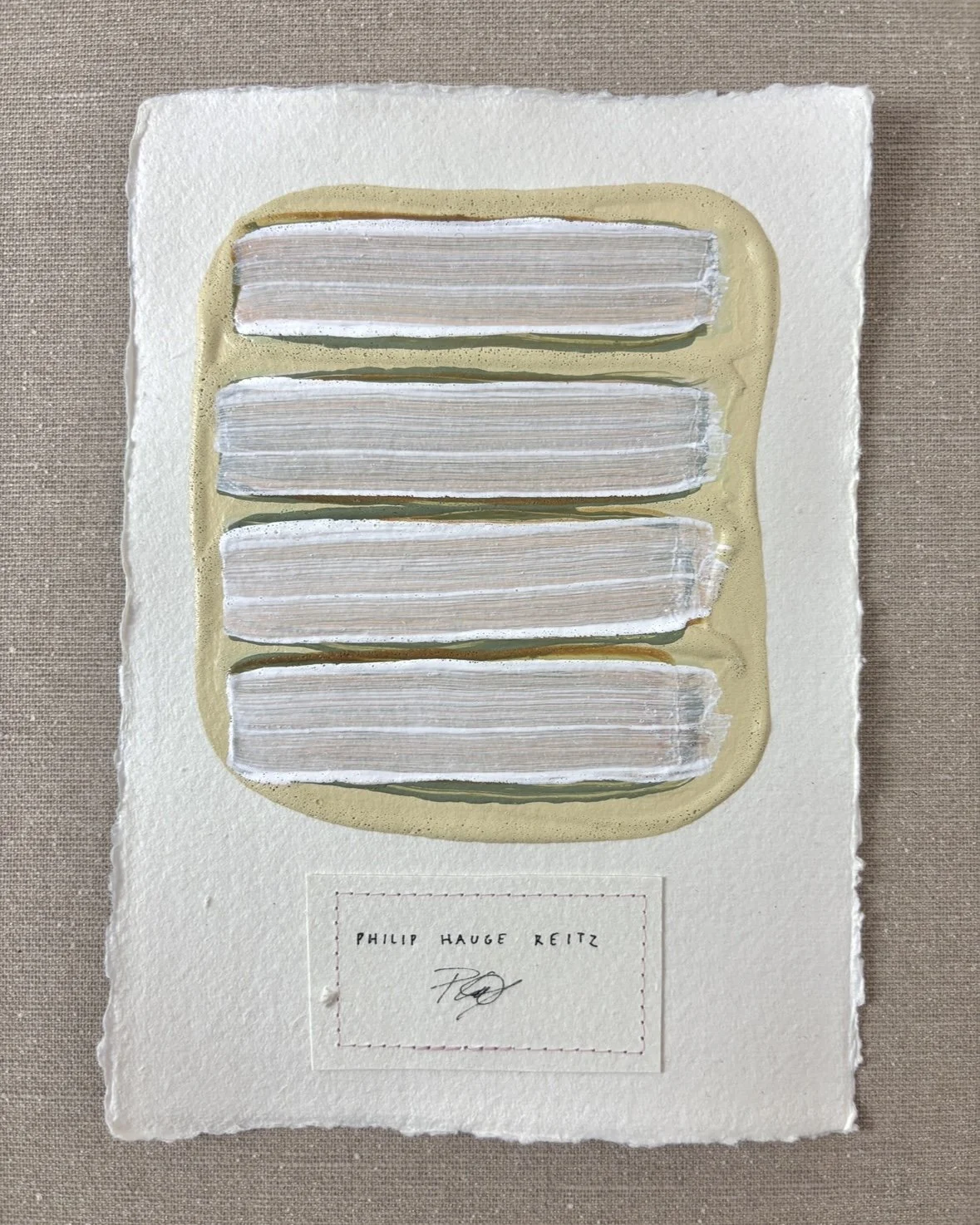 MIXED MEDIA ON HANDMADE PAPER WITH SEWN THREAD
