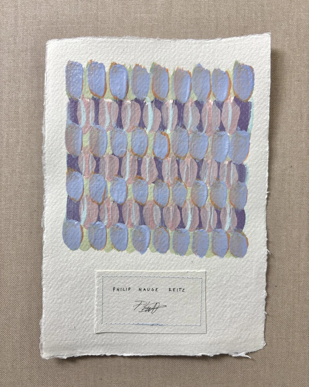MIXED MEDIA ON HANDMADE PAPER WITH SEWN THREAD